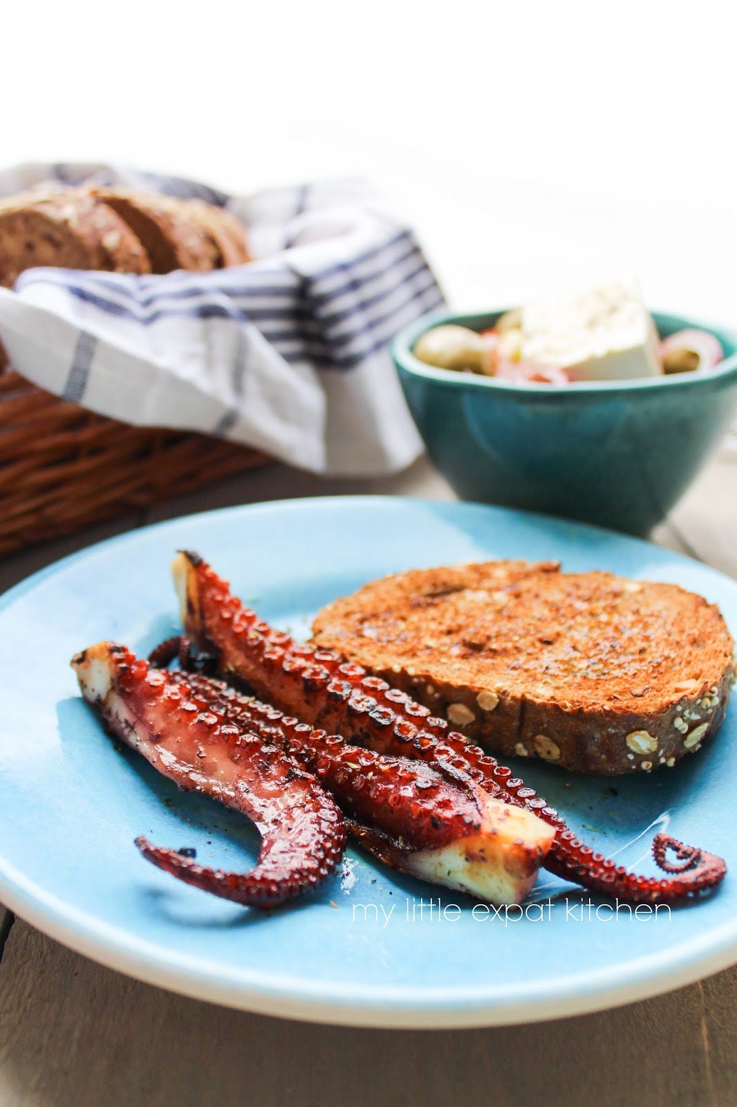 Octopus to me is the epitome of summer. It’s the food I grew up eating at our summer house by the sea outside of Athens and the sort of mezes I always order when I’m at a seaside restaurant in any coastal part of Greece.