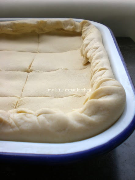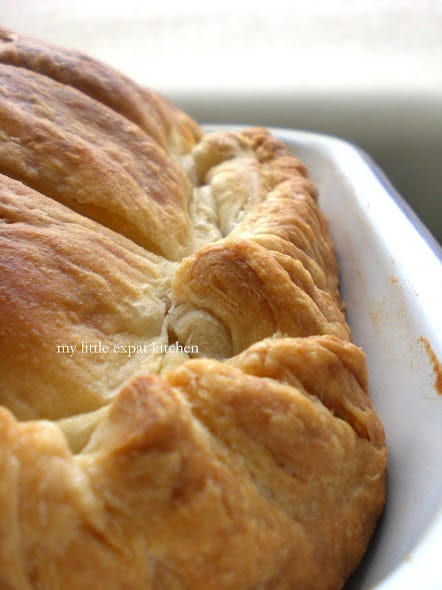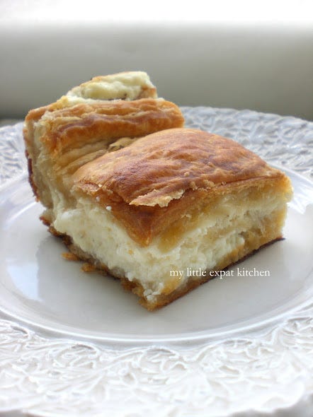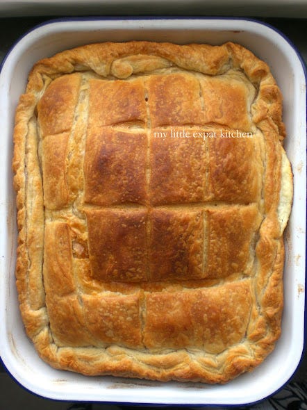 With feta, béchamel and puff pastry - my mom's tyropita